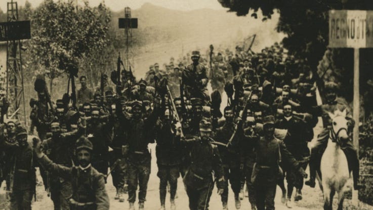 Just a few more years, and images would tell of yet another march—just as resolute, but with a far darker fate: that of soldiers departing for the front, stepping forward with the same determined pace, yet heading towards the unimaginable horror of World War I.
