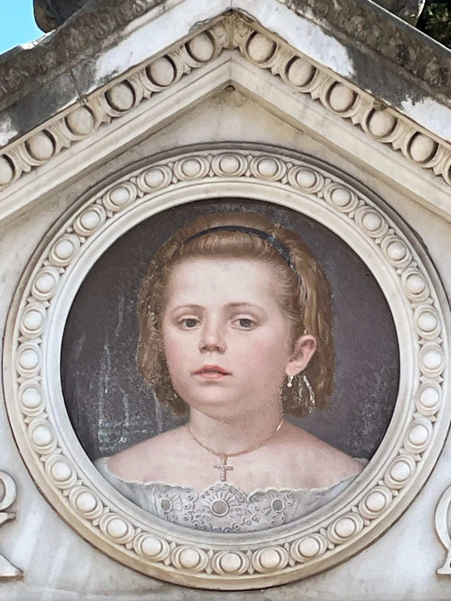 Among Severati’s portraits is that of Marietta Fiori who, as her headstone records, died on 22 February 1873, “aged 4 months 6 days 12”. Her parents were Giovanni and Antonia.